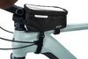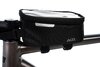 abriebfestes Außenmaterial, PVC-frei, reflektierende Elemente, drei Klettverschlusshalterungen bieten besten Halt am Rahmen, inklusive Verlängerungsband für E-Bikes, Regenhülle, integriertes Innenfach mit Touchscreen-Folie bietet Platz für alle Mobiltelefone mit einer Maximalgröße von 17 x 8,5 cm (LxB), großes Sichtfenster 17 x 9,0 cm (LxB)Material: Polyester