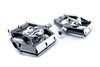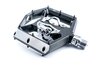 Click Flat-Pedal mit beidseitigem Klick-System, SPD-kompatibel, CNC-veredelter Aluminiumkörper und CrMo Achse, angefaste Kanten für erhöhte Bodenfreiheit in Kurven, große Standfläche, extrem flache Bauweise, 16 austauschbare und einstellbare Pins, gedichtete IndustrielagerMaterial: Aluminium