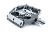 leichtes Combo-Pedal mit einseitigem Klick-System, SPD-kompatibel, CNC-veredelter Aluminiumkörper und CrMo Achse, angefaste Kanten für erhöhte Bodenfreiheit in Kurven, große Standfläche, extrem flache Bauweise, 16 austauschbare und einstellbare Pins, gedichtete IndustrielagerMaterial: Aluminium