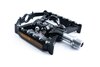 leichtes Flat-Pedal mit einseitigem Klick-System, SPD-kompatibel, CNC-gefräster Aluminiumkörper und CrMo Achse, große Standfläche, extrem flache Bauweise, integrierte Pins, gedichtete Industrielager, inklusive ReflektorenMaterial: Aluminium