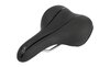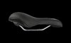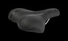 großer, breiter City-Sattel für eine große Auflagefläche und Druckverteilung, Dual-Density Technologie für die Entlastung an den Sitzknochen, ergonomische Aussparung für empfindliche Nervenbereiche, Genitalaussparung in der Sattelschale, T-Form für mehr BeinfreiheitMaterial: PU Obermaterial